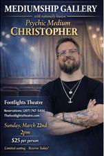 Join us for an incredible night of mediumship as nationally known psychic medium Christopher J. Brown returns to the Footlights Theatre to connect attendees with their loved ones in spirit. The audience will gather as a group to receive personal evidential messages as well as healing words of love.