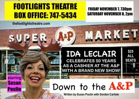 SHE'S BAAACK! Maine's own funny lady, Ida LeClair, returns to The FOOTLIGHTS THEATRE with an encore weekend of her brand new show, “Down to the A&P”! Join Ida (award-winning actress, Susan Poulin) as she celebrates her fifty years as a cashier down to the A&P, the only supermarket in Mahoosuc Mills, Maine.